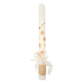 Ciri per a bateig decorat amb llaç, corda i estrelles de color beix.