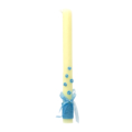 Ciri per a bateig de cera color beige clar decorat amb llaç, corda i petites roses de color blau.