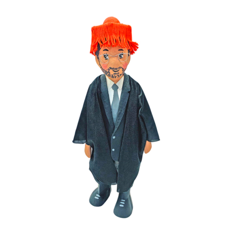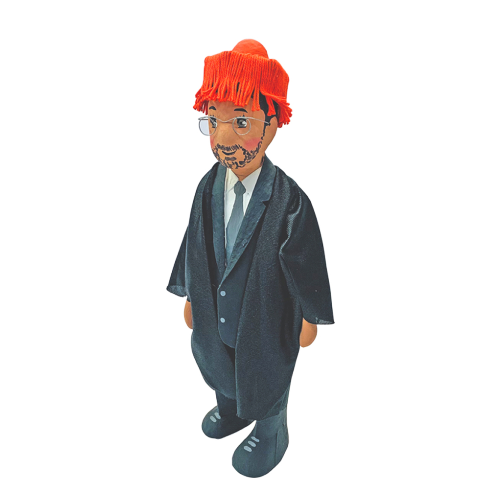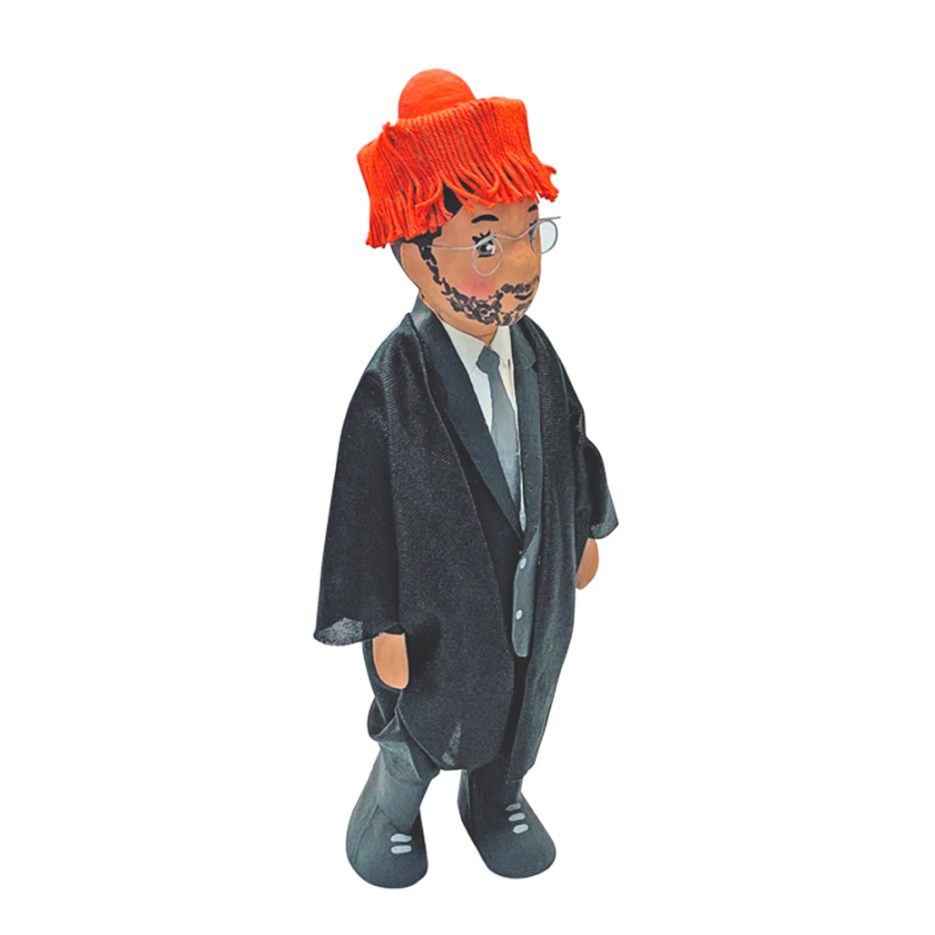 Figura de papel maché graduado con gorrito, personalizada a partir de una fotografía. 33 cm. de altura.
