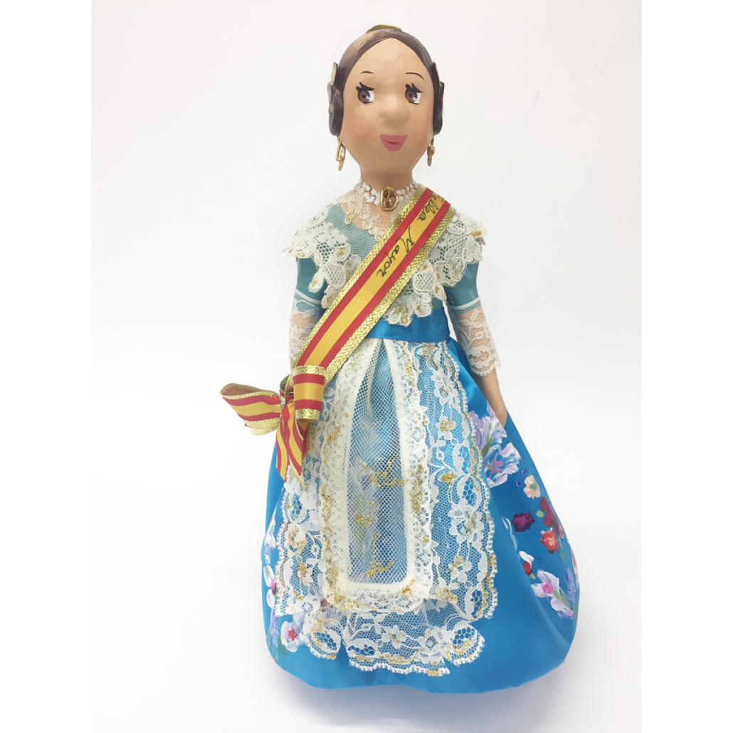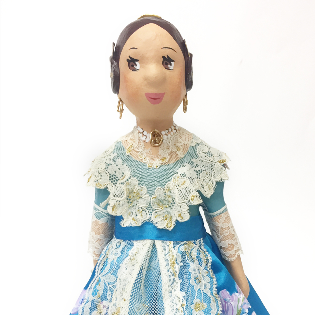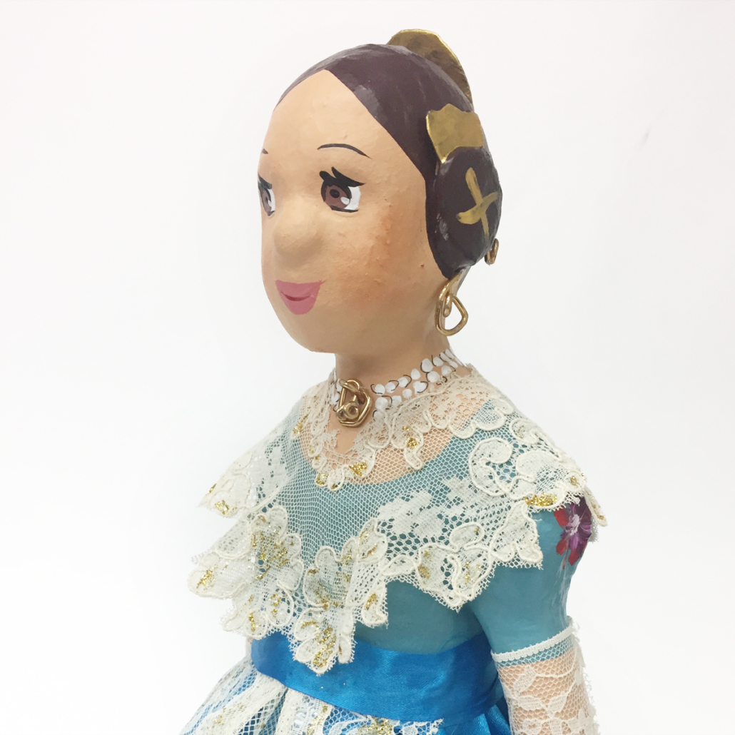 Figura de paper maixé fallera, personalitzada a partir d’una fotografia. 33 cm. d’altura.