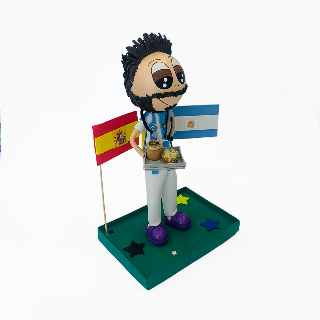 Fofucha de seguidor de futbol argentí, figures de goma eva. 30 cm d’altura. Personalitzades a partir d’una fotografia.
