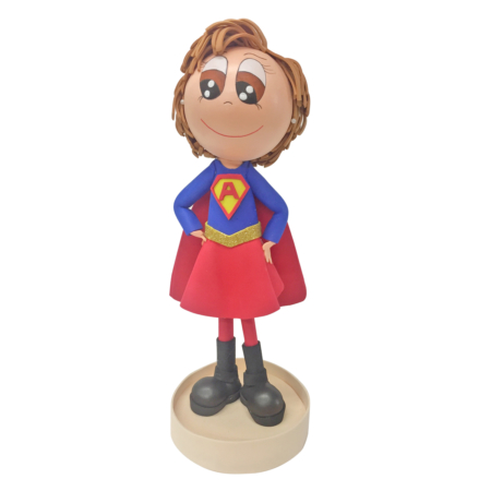 Fofucha superheroïna. Figura realitzada en goma eva, de 30 cm d’altura i personalitzada a partir d’una fotografia.
